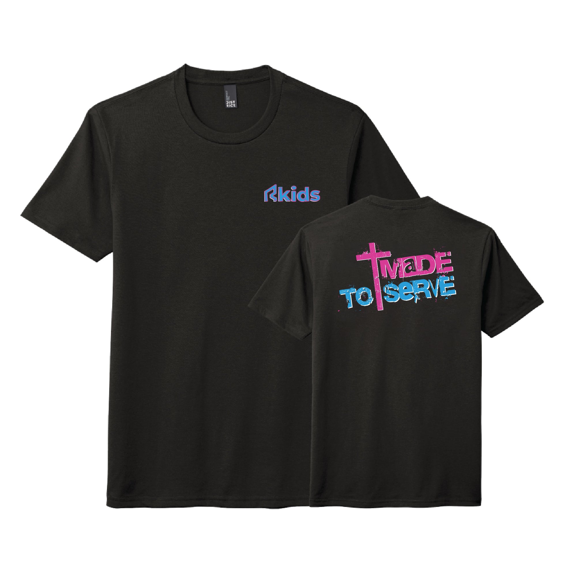 Unisex 4.5 oz tri-blend ring spun tee, with 'Refresh Made to Serve' design on back and 'Refresh Rkids' on the front pocket. 50/25/25 Poly/Cotton/Rayon